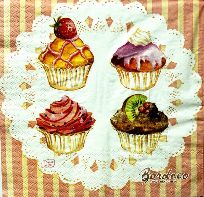 Serwetka do decoupage muffinki, babeczki 33x33 SWEET PAC, UnikatSerwetka do decoupage muffinki, babeczki 33x33 SWEET PAC, UnikatSerwetka do decoupage muffinki, babeczki 33x33 SWEET PAC, Unikat