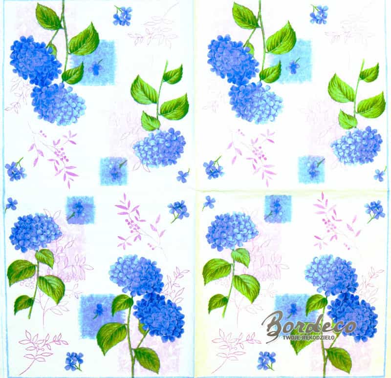 Serwetka do decoupage niebieskie hortensje 33x33 COLOURFUL Unikat