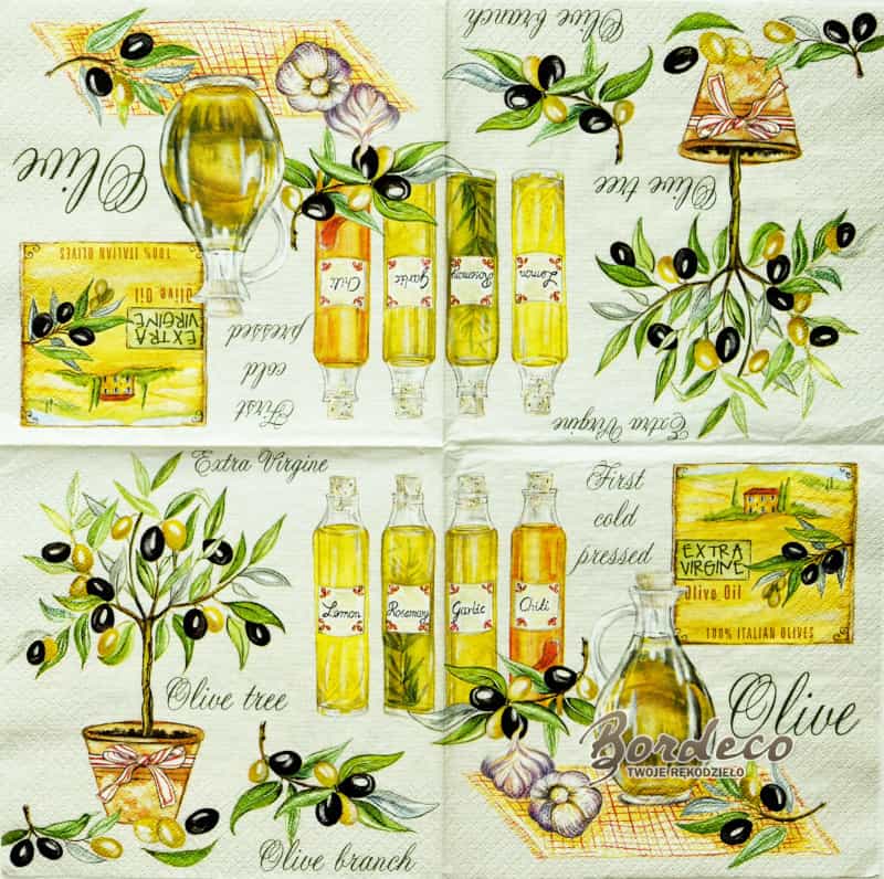 Serwetka do decoupage seria DAISY z motywem oliwy i oliwek 33x33cm. Unikat