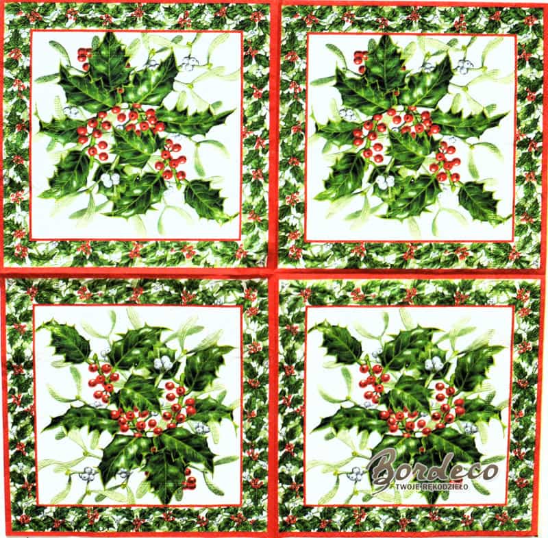Serwetka do decoupage firmy Paper+Design  z motywem ostrokrzewu i jemioły 33x33.cm. Unikat