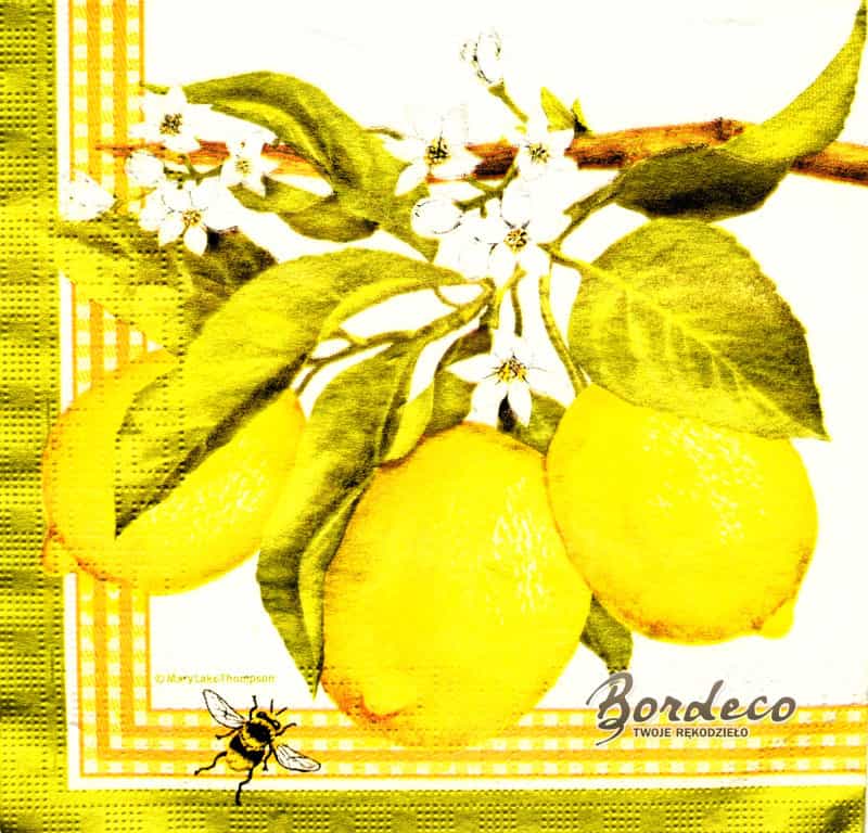 Serwetka do decoupage firmy PAW z motywem owoce i kwiaty cytryny 33x33cm. Unikat