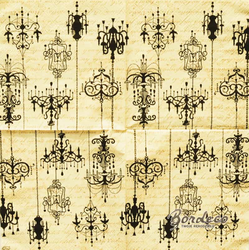 Strona główna ? Serwetki ? Serwetka do decoupage ozdobne czarne żyrandole 33x33 PAW Unikat