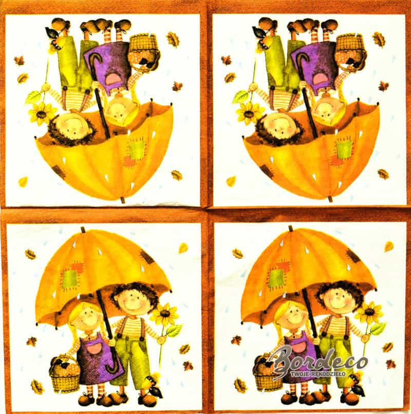 Serwetka do decoupage firmy BRAUN+ Company chłopiec i dziewczynka pod parasolem 33x33cm.