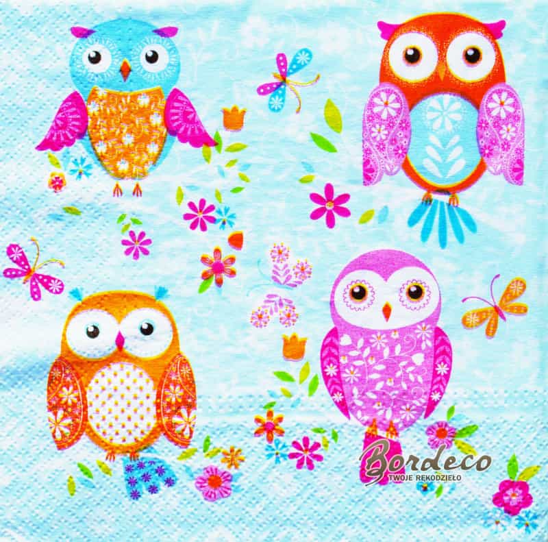 Serwetka do decoupage patchworkowe sówki 33x33 PAW Unikat