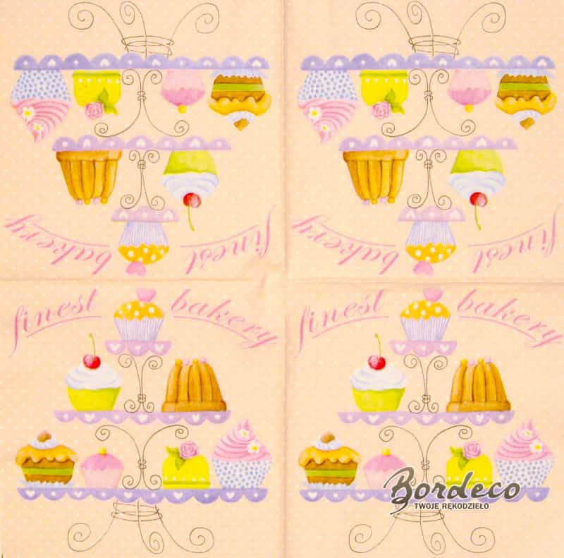 Serwetka do decoupage firmy ATELIER z motywem patery z babeczkami 33x33cm. Unikat.