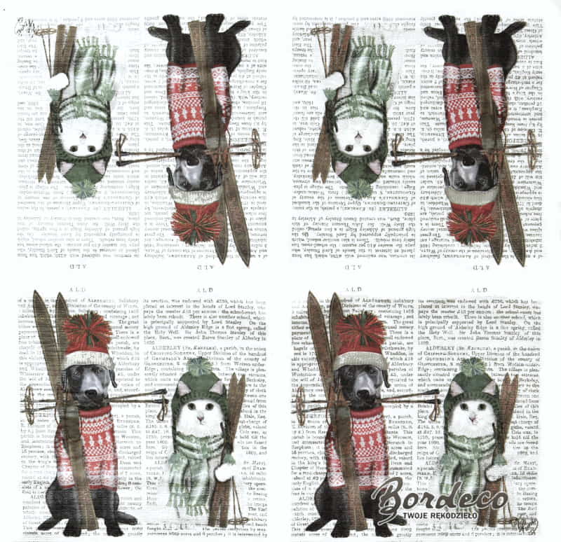 Strona główna ? Serwetki ? Serwetka do decoupage pies i kot na nartach 33x33 PPD Unikat
