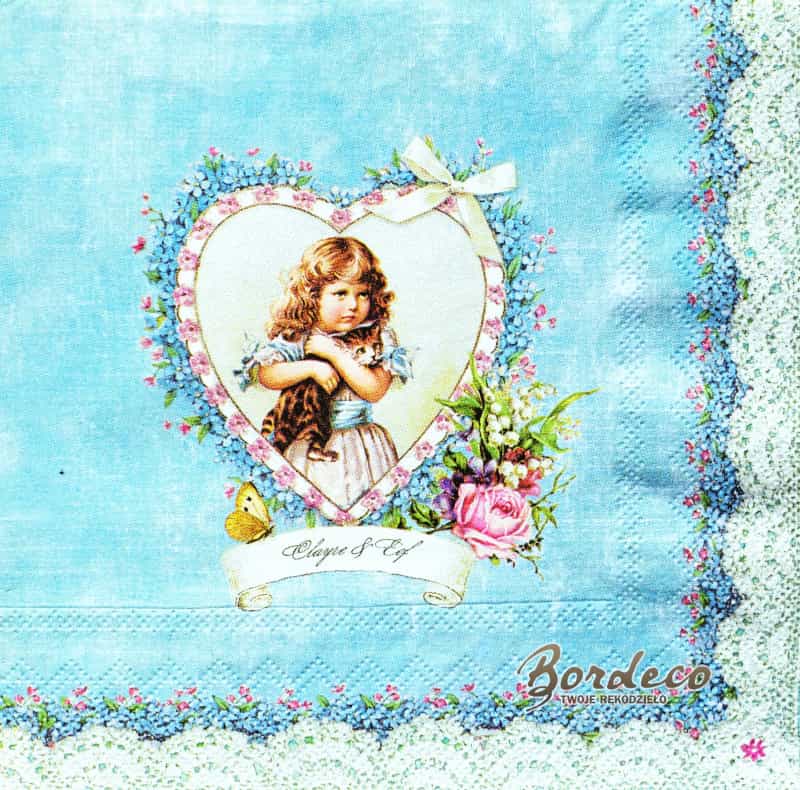 Serwetka do decoupage portret dziewczynki z kotem  33x33 CLAYRE@EEF Unikat