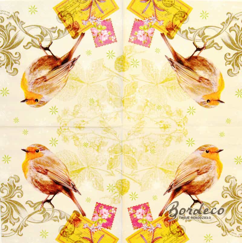 Serwetka do decoupage firmy STEWO z motywem ptaszka rudzika 33x33cm. Unikat