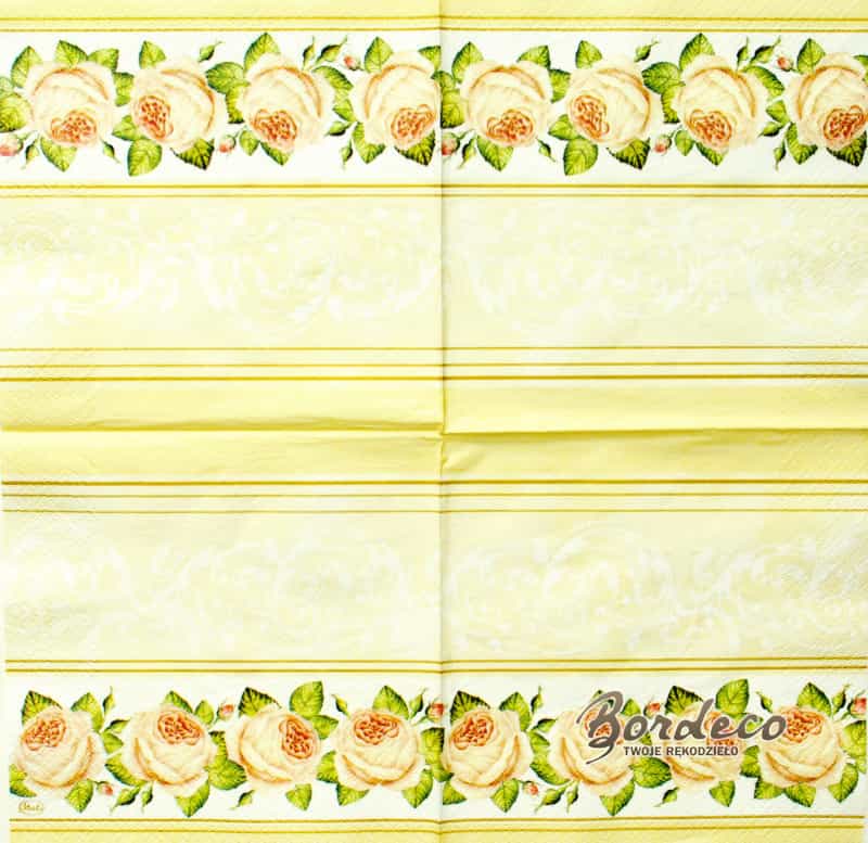 Serwetka do decoupage seria MAKI z motywem różanej bordiury 33x33cm. Unikat