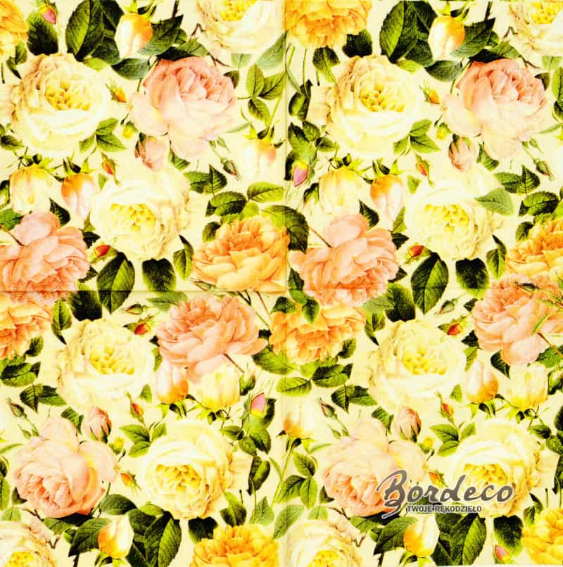 Serwetka do decoupage róże w pastelowych kolorach 25x25 Atelier Unikat