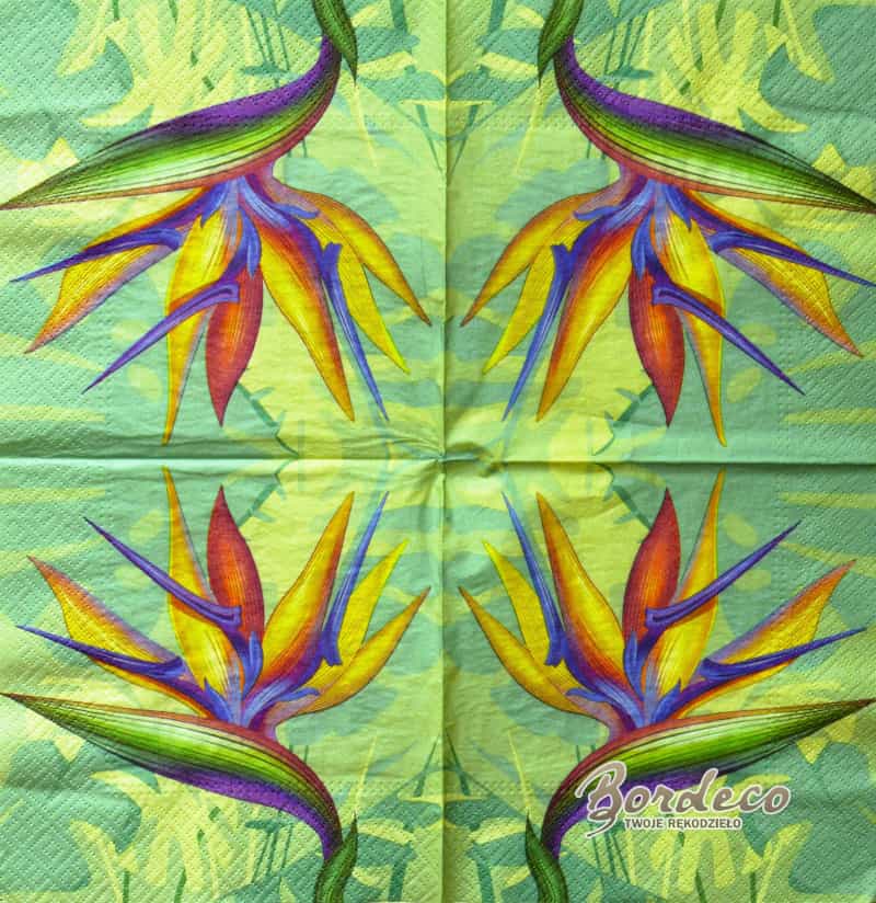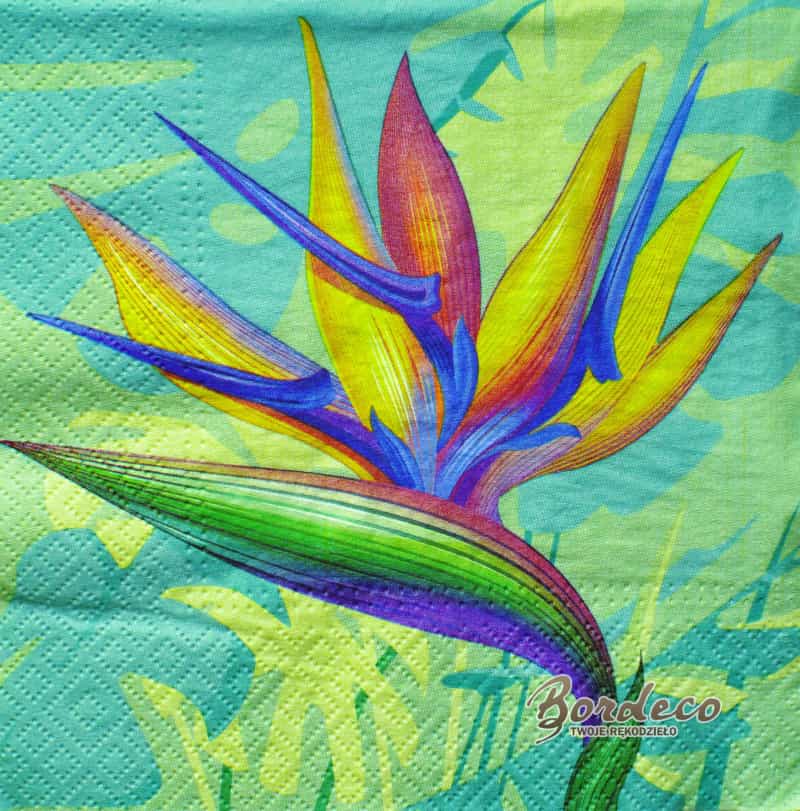 Serwetka do decoupage firmy PAW z motywem kwiatu strelicji, 33x33cm. Unikat