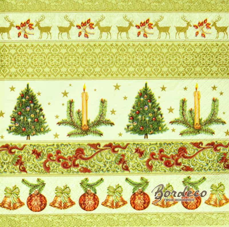 Serwetka do decoupage seria DAISY z motywem świątecznych szlaczków 33x33cm. Unikat