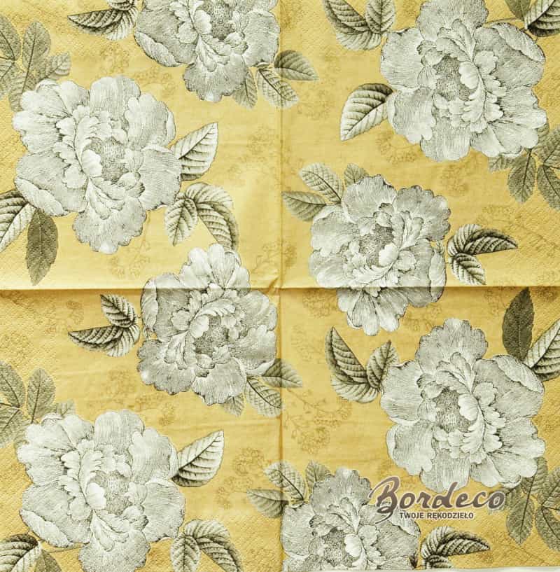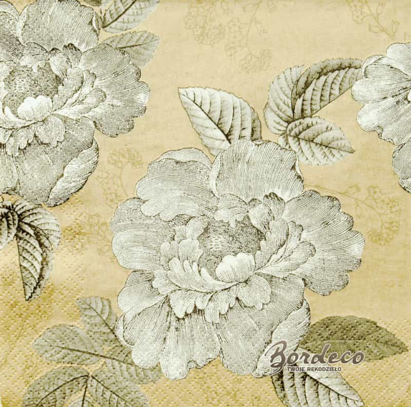 Serwetka do decoupage szare róże, szkic na beżowym tle 33x33 AVANT GARDE. Unikat.