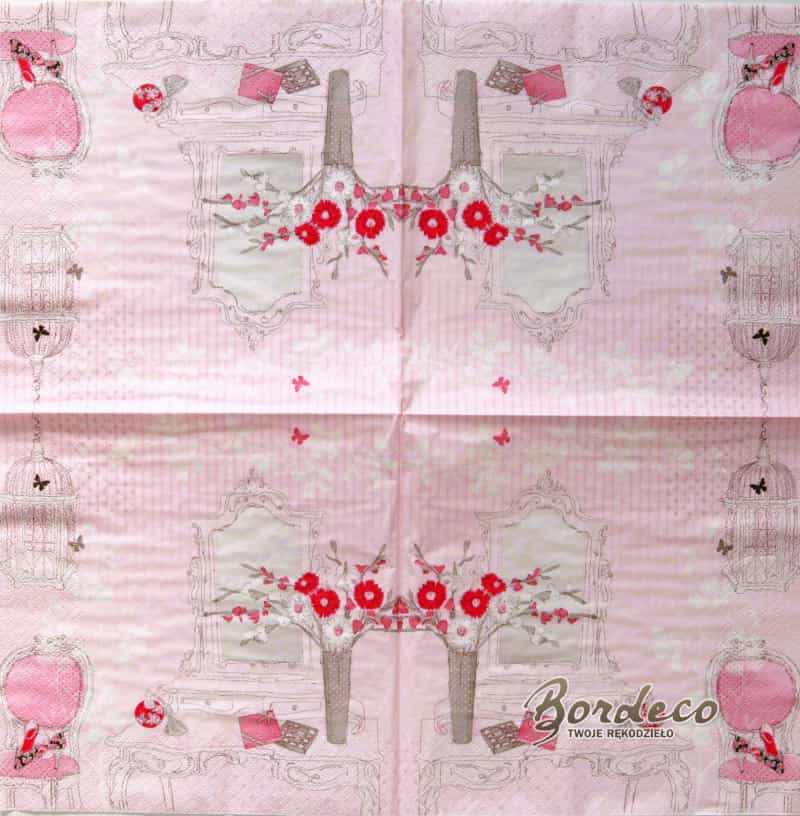 Serwetka do decoupage firmy JET PAPER seria TI-FLAIR z motywem toaletki w różowym pokoju 33x33cm. Unikat