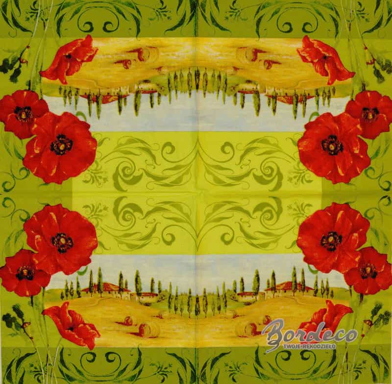 Serwetka do decoupage firmy PAPSTAR z motywem Toskanii z makami 33x33cm. Unikat.