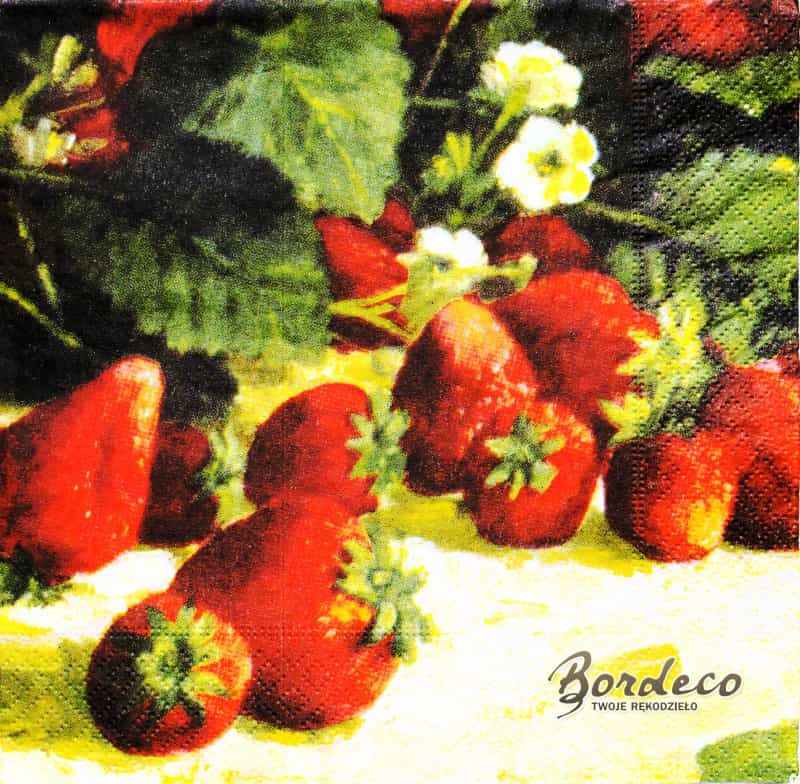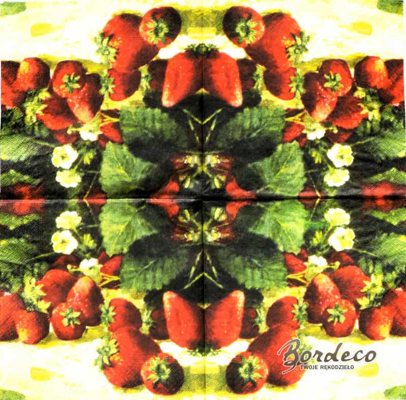 Serwetka do decoupage firmy Paper+Design  z motywem truskawki jak malowane 33x33.cm. Unikat