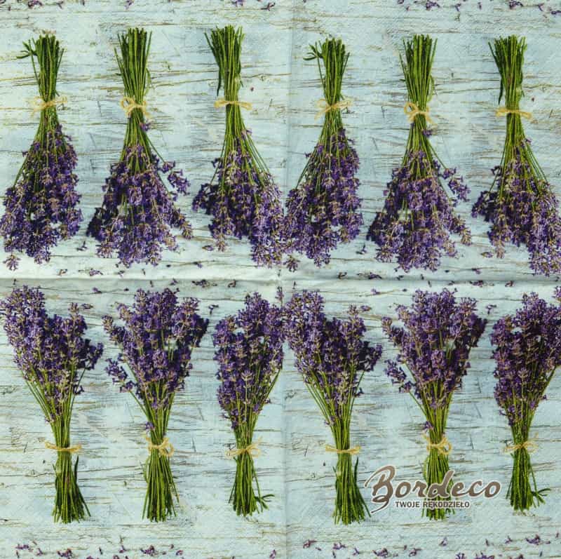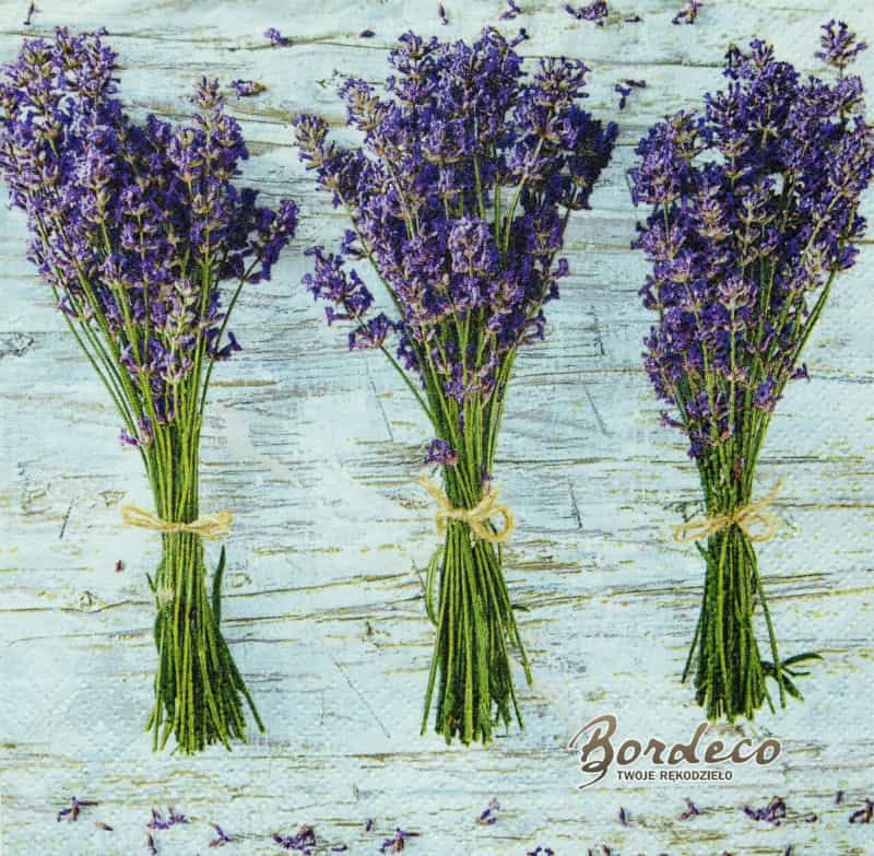 Serwetka do decoupage seria DAISY z motywem trzech wiązek lawendy 33x33cm. Unikat