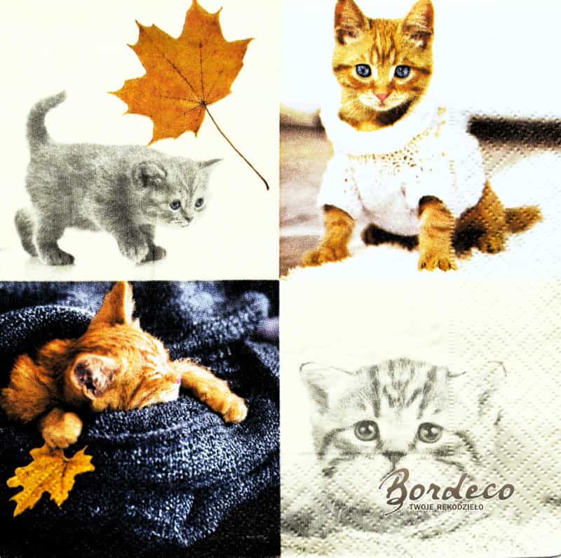 Serwetka do decoupage firmy Paper+Design  z motywem uroczych małych kotków  33x33.cm. Unikat