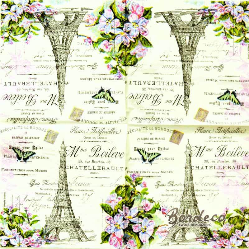 Strona główna ? Serwetki ? Serwetka do decoupage wiaża Eiffla i kwiaty, vintage 25x25 PIXIE Unikat