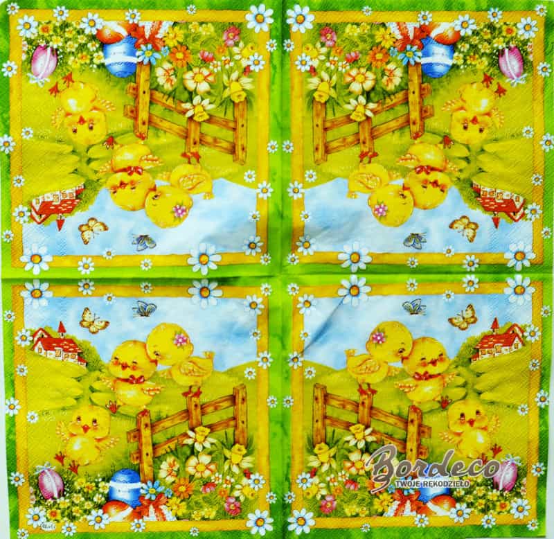 Serwetka do decoupage wielkanocne kurczaczki na łące 33x33 MAKI Unikat