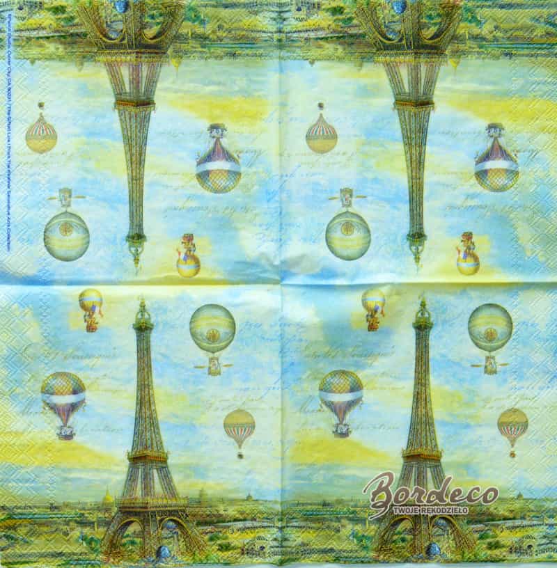 Serwetka do decoupage wieża  Eiffla i balony 25x25 PUNCH, Unikat