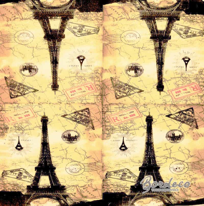 Serwetka do decoupage wieża Eiffla, vintage 33x33 BRAUN+Company Unikat