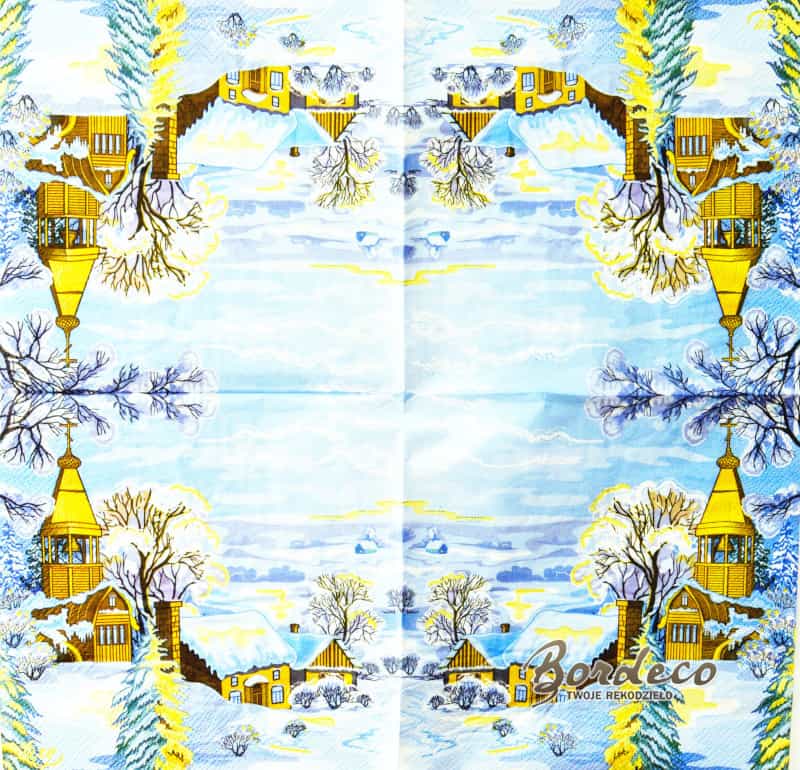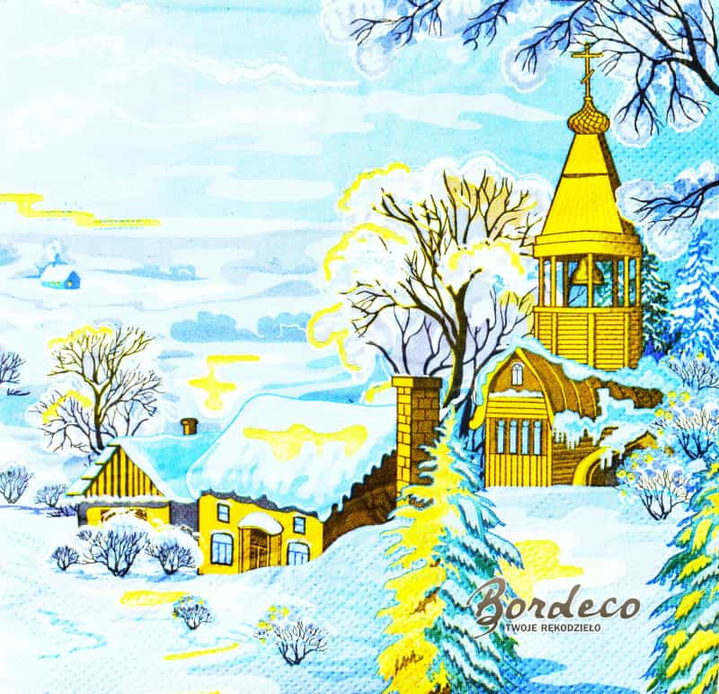 Serwetka do decoupage wioska z kościółkiem zimą 33x33 LUXY Unikat