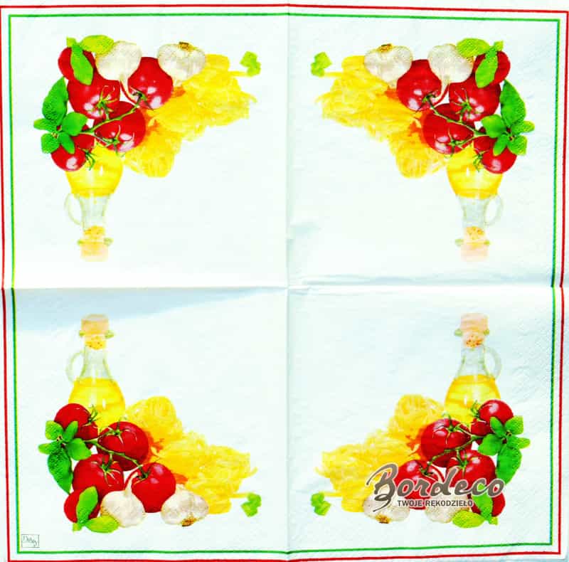 Strona główna ? Serwetki ? Serwetka do decoupage włoska kuchnia, pomidory, oliwa i makaron 33x33 DAISY Unikat