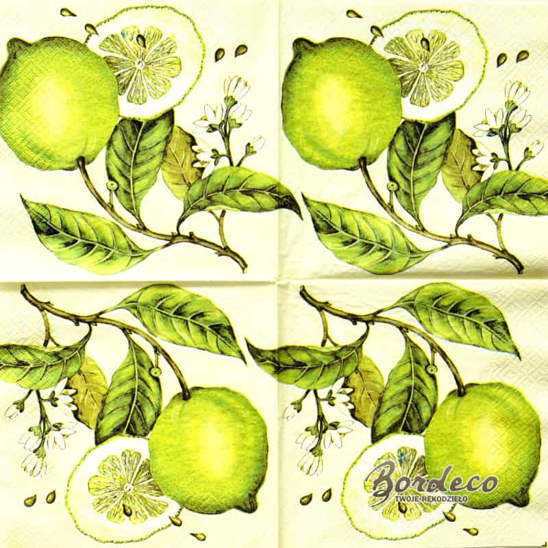 Strona główna ? Serwetki ? Serwetka do decoupage zielone cytryny 33x33 VIVA. Unikat