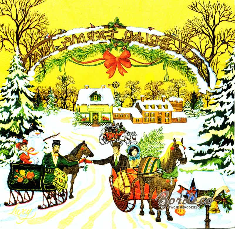 Serwetka do decoupage seria PIXIE DESIGN z motywem zimowego kuligu 33x33cm.Unikat.