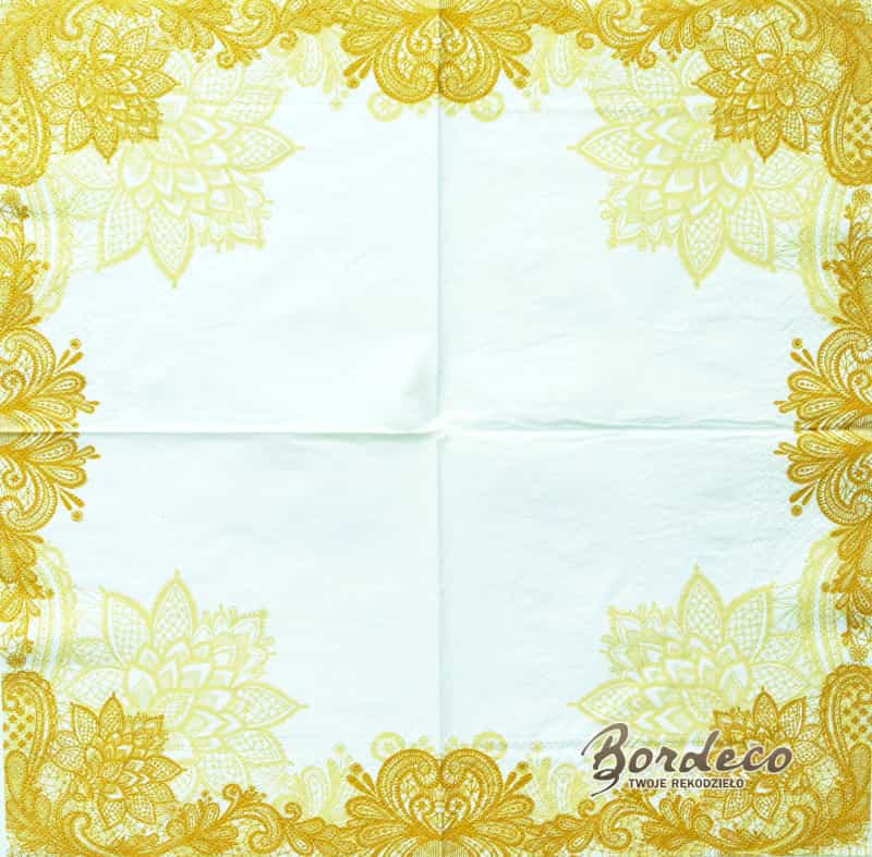 Strona główna ? Serwetki ? Serwetka do decoupage złota koronka, haft 33x33 TETEaTETE Unikat