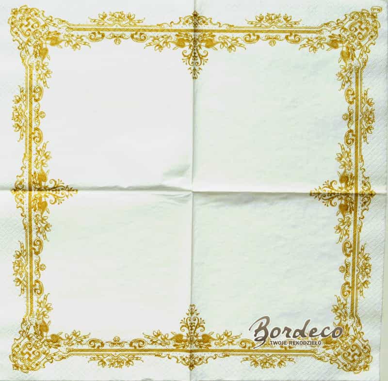Serwetka do decoupage seria MAKI z motywem złotej ramki 33x33cm. Unikat