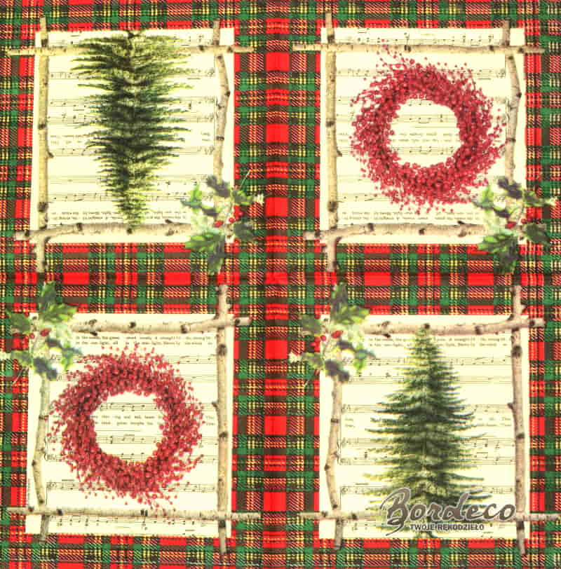 Serwetka do decoupage zielona choinka i czerwony wianek 33x33 PPD Unikat